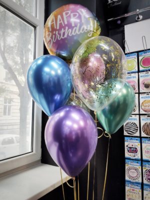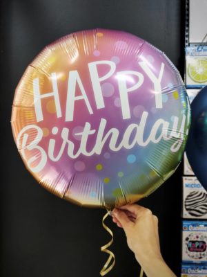 - фольгована кулька кольорове “омбре” з написом “Happy birthday”